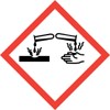 Corrosive (Symbol: corrosion on hands and surface)