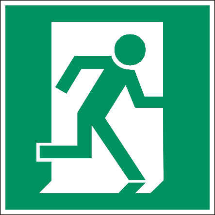 Emergency escape and first aid signs are used to show information that indicates a safe escape route or the route to first aid facilities. These health and safety signs are required to be green, and usually have a white symbol on a green background.